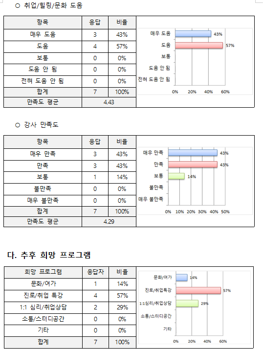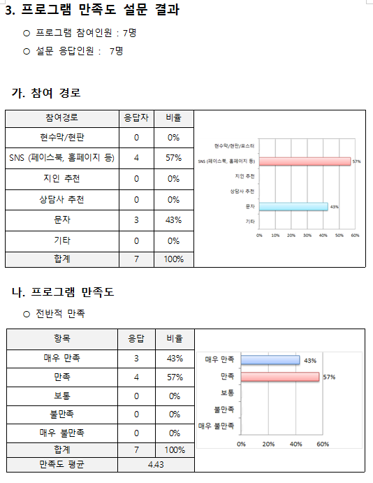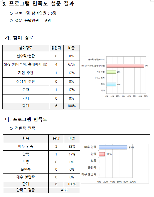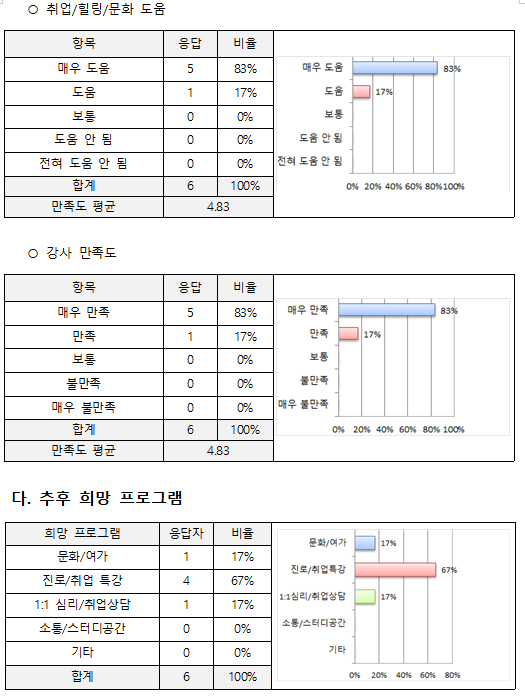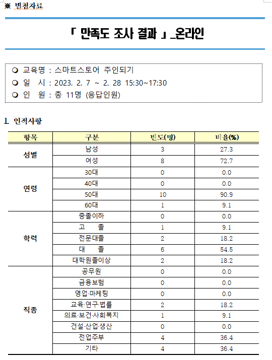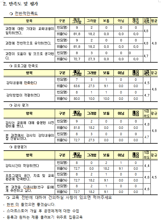 기존 교육의 수강생 만족도 조사 결과 두 개를 공개합니다.