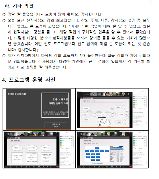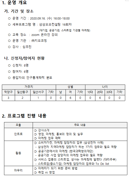2. "대기업/공공기관/스타트업에서 마케팅 담당자의 일" 교육 (2020.09)